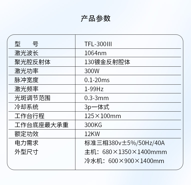 TFL-300Ⅲ型模具激光焊機是通發(fā)激光公司自主研發(fā)的一款大功率激光焊接機,采用通發(fā)自主研發(fā)的二代精密雙燈電源為燈泵浦驅動電源,配置觸摸屏,操作更方便。主機具備激光頭手搖升降與工作臺按鈕電動升降實現(xiàn)焊接不同厚度模具的激光焊加工。本款機型更適用于各類大功率、大面積激光修補的模具。由于激光功率大,同時可激光焊接鈹銅模具,鋁材模具或鋁材零件。在大面積激光修補模具時,可以使用更粗的焊絲,激光焊接效率大幅提升。