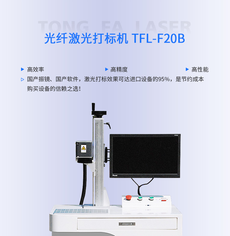 通發(fā)激光研發(fā)的TFL-F20B激光打標(biāo)機(jī),金屬材質(zhì)和塑膠材質(zhì)均可進(jìn)行打標(biāo)加工。本激光鐳雕機(jī)光纖激光器、振鏡、軟件、聚焦鏡等核心配件采用原裝進(jìn)口,性能穩(wěn)定,壽命是國(guó)產(chǎn)器件的1.5倍,是高端客戶的優(yōu)選。
