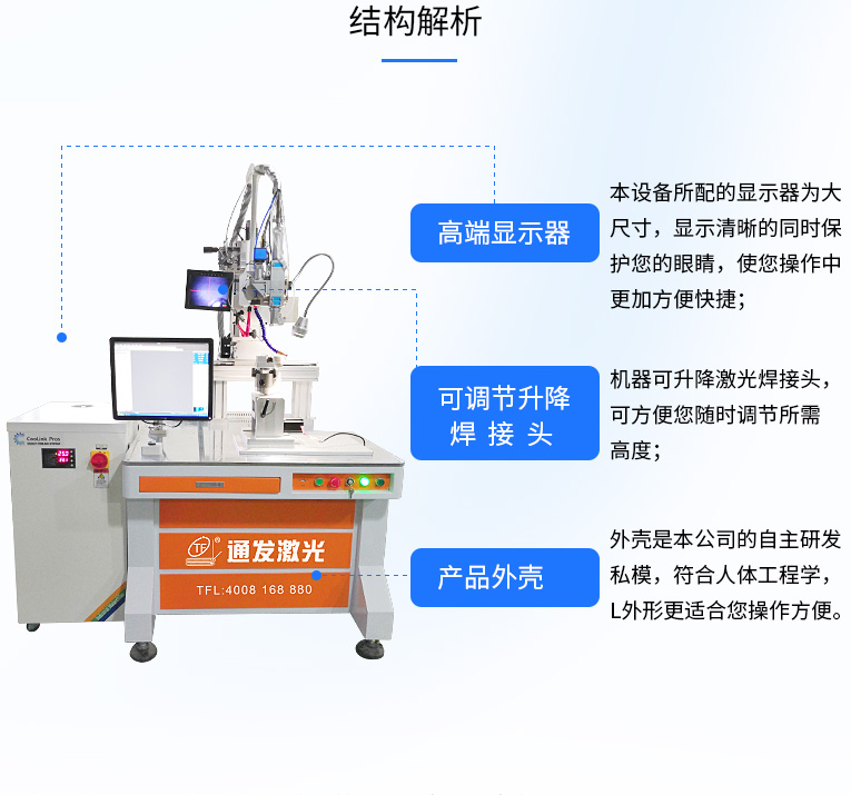 2、強(qiáng)大的PC控制,易于編程、調(diào)試和維護(hù)??赏瓿勺詣踊虬胱詣拥狞c(diǎn)焊、對接焊、疊焊、密封焊,針對復(fù)雜的平面直線、圓弧及任意軌跡的焊接。