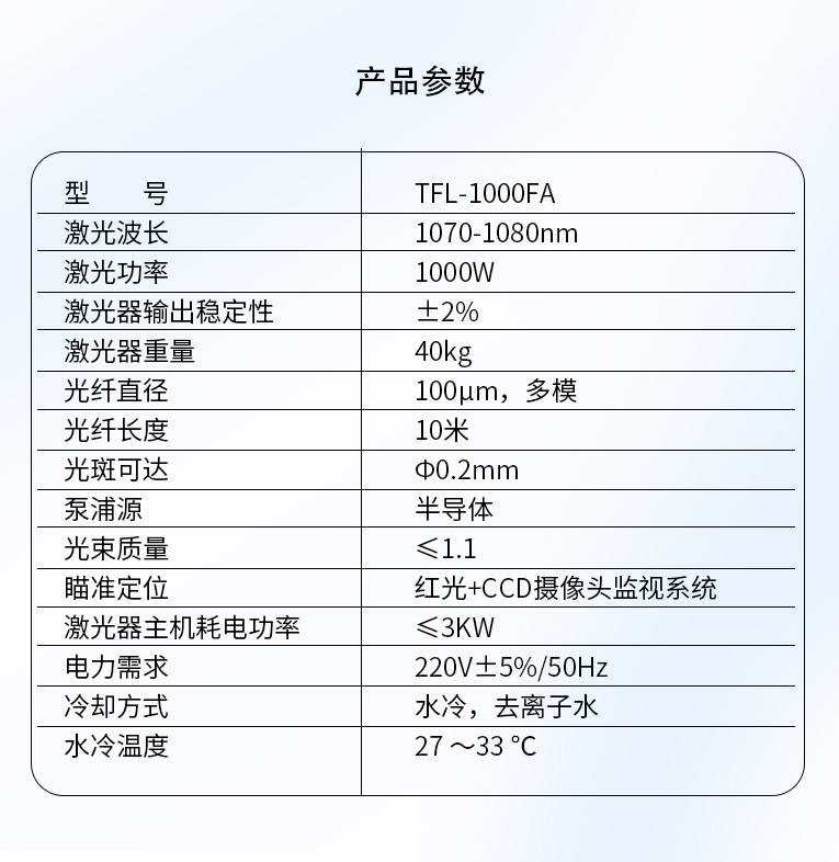 環(huán)境溫度:攝氏4度-攝氏32度。設(shè)備運(yùn)行時,環(huán)境溫度不可以超過攝氏32度,因?yàn)榧す怆娫床糠?,功率很高,一些功率器件運(yùn)行時發(fā)出熱量需要及時散發(fā)出去,而環(huán)境溫度太高會導(dǎo)至不能正常散熱,會引起整個系統(tǒng)的工作不穩(wěn)定,甚至損壞。而冬天的時候,需要嚴(yán)防冷卻水結(jié)冰,因?yàn)榧す饩w、氙燈、聚光腔都充滿了水,結(jié)冰會直接導(dǎo)致這些器件的損壞。冬天時如長時間不運(yùn)行情況下,將腔內(nèi)的水排空;如再開機(jī)前,先重新加水,打開電源空氣開關(guān),先行主機(jī)不開,只開水機(jī)空機(jī)運(yùn)行10分鐘,等水溫回復(fù)到攝氏4 度以上,再開主機(jī)。(強(qiáng)烈要求不能將設(shè)備放于室外或者低溫結(jié)冰的情況下使用,否則極易損壞設(shè)備)