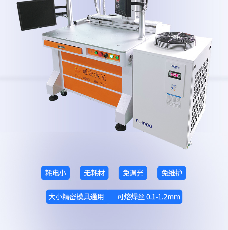 1、采用光纖激光器,反射率高,能量強(qiáng),免維護(hù),免調(diào)光,功耗少,相比傳統(tǒng) 模具焊來(lái)說(shuō),體積小,安全,穩(wěn)定性好超長(zhǎng)使用壽命。